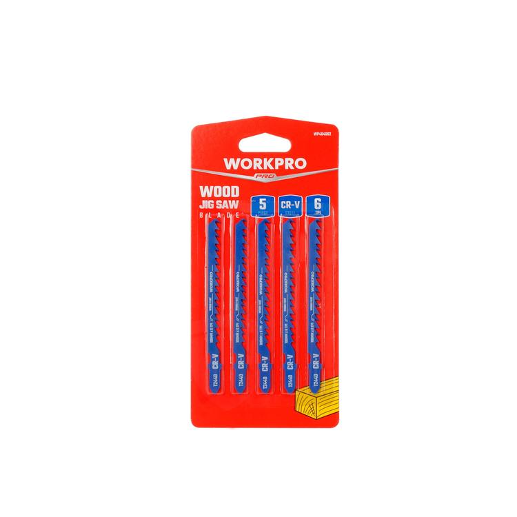 Deze 5-delige WORKPRO decoupeerzaagbladset is ideaal voor snel en efficiënt zagen van hout en kunststof. De bladen zijn gemaakt van hoogwaardig CR-V staal (chroom-vanadium) en voorzien van geslepen zijtanden voor scherpe en nauwkeurige sneden. Dankzij de T-schachtaansluiting passen de bladen stevig en spelingvrij in de meeste gangbare decoupeerzagen.