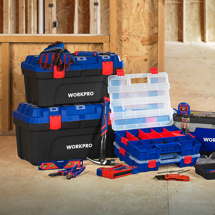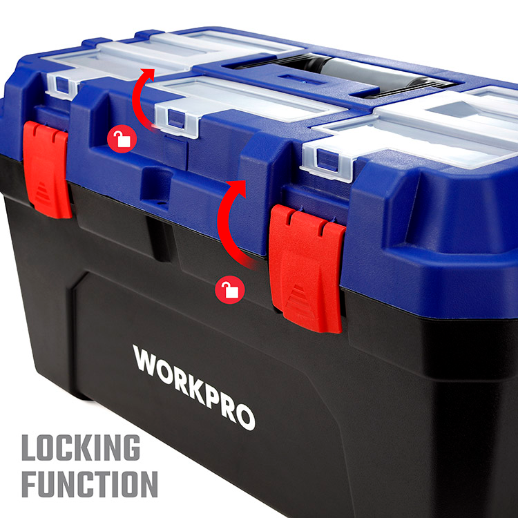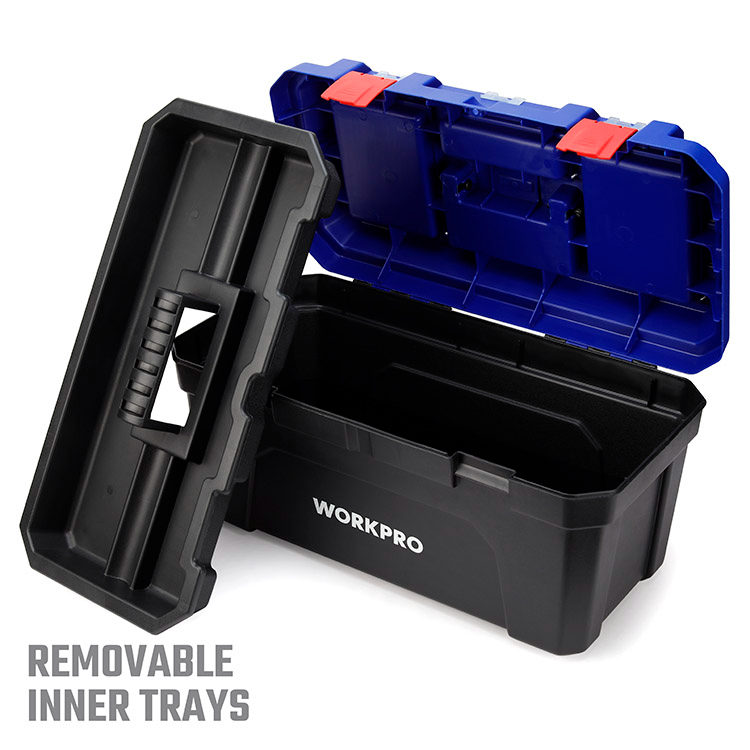 WORKPRO Gereedschapskist 572×300×295 mm – Slagvast PP-kunststof | Met Tray & Dekselorganizer