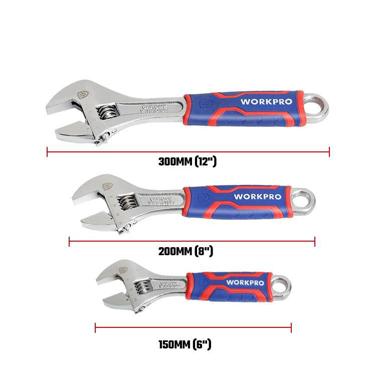 WORKPRO WP202515 – 3-delige Verstelbare Moersleutelset | CR-V Staal | 150, 200 & 300 mm