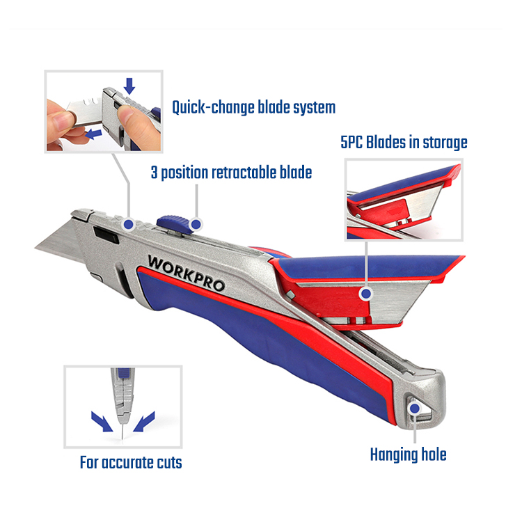 WORKPRO Uitschuifbaar Mes – SK5 Staal | Snelwisselsysteem & Reservemesjes-opslag